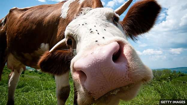 (研究人员证明了给奶牛刷上颜色能减少蚊虫叮咬。)