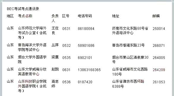 2011年BEC商务英语考试山东考点 2011年上半年BEC商务英语考试即将在五月开考,新东方在线特别汇总整理了BEC商务英语考试考点通讯录供广大考生参考查询。 相关练习: BEC每日一句:...