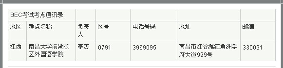 2011年BEC商务英语考试江西考点 2011年上半年BEC商务英语考试即将在五月开考,新东方在线特别汇总整理了BEC商务英语考试考点通讯录供广大考生参考查询。 相关练习: BEC每日一句:...
