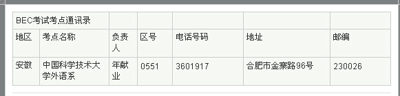 2011年BEC商务英语考试安徽考点 2011年上半年BEC商务英语考试即将在五月开考,新东方在线特别汇总整理了BEC商务英语考试考点通讯录供广大考生参考查询。 相关练习: BEC每日一句:...