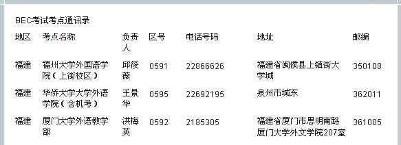 2011年BEC商务英语考试福建考点 2011年上半年BEC商务英语考试即将在五月开考,新东方在线特别汇总整理了BEC商务英语考试考点通讯录供广大考生参考查询。 相关练习: BEC每日一句:...