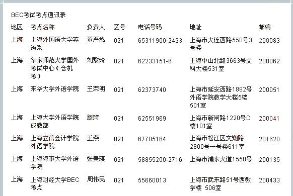 2011年BEC商务英语考试上海考点 2011年上半年BEC商务英语考试即将在五月开考,新东方在线特别汇总整理了BEC商务英语考试考点通讯录供广大考生参考查询。 BEC口语: BEC每日一句:提...