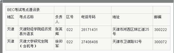 2011年BEC商务英语考试天津考点 2011年上半年BEC商务英语考试即将在五月开考,新东方在线特别汇总整理了BEC商务英语考试考点通讯录供广大考生参考查询。 BEC口语: BEC每日一句:提...
