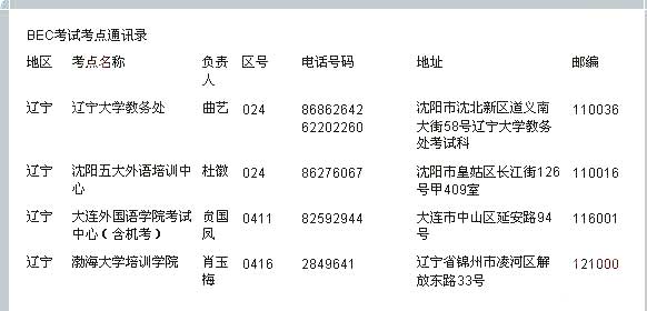 2011年BEC商务英语考试辽宁考点 2011年上半年BEC商务英语考试即将在五月开考,新东方在线特别汇总整理了BEC商务英语考试考点通讯录供广大考生参考查询。 BEC口语: BEC每日一句:提...