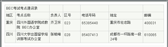 2011年BEC商务英语考试四川考点 2011年上半年BEC商务英语考试即将在五月开考,新东方在线特别汇总整理了BEC商务英语考试考点通讯录供广大考生参考查询。 相关练习: BEC每日一句:...