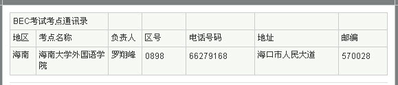 2011年BEC商务英语考试海南考点 2011年上半年BEC商务英语考试即将在五月开考,新东方在线特别汇总整理了BEC商务英语考试考点通讯录供广大考生参考查询。 相关练习: BEC每日一句:...