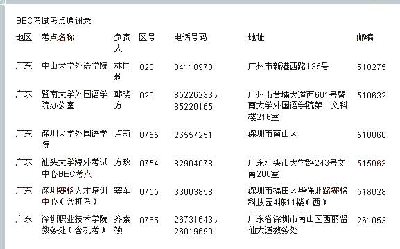 2011年BEC商务英语考试广东考点 2011年上半年BEC商务英语考试即将在五月开考,新东方在线特别汇总整理了BEC商务英语考试考点通讯录供广大考生参考查询。 相关练习: BEC每日一句:...