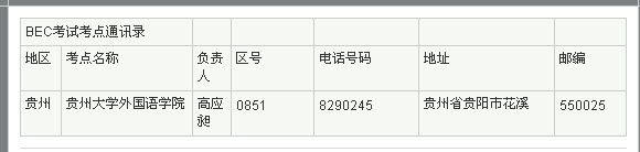 2011年BEC商务英语考试贵州考点 2011年上半年BEC商务英语考试即将在五月开考,新东方在线特别汇总整理了BEC商务英语考试考点通讯录供广大考生参考查询。 相关练习: BEC每日一句:...