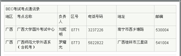 2011年BEC商务英语考试广西考点 2011年上半年BEC商务英语考试即将在五月开考,新东方在线特别汇总整理了BEC商务英语考试考点通讯录供广大考生参考查询。 相关练习: BEC每日一句:...
